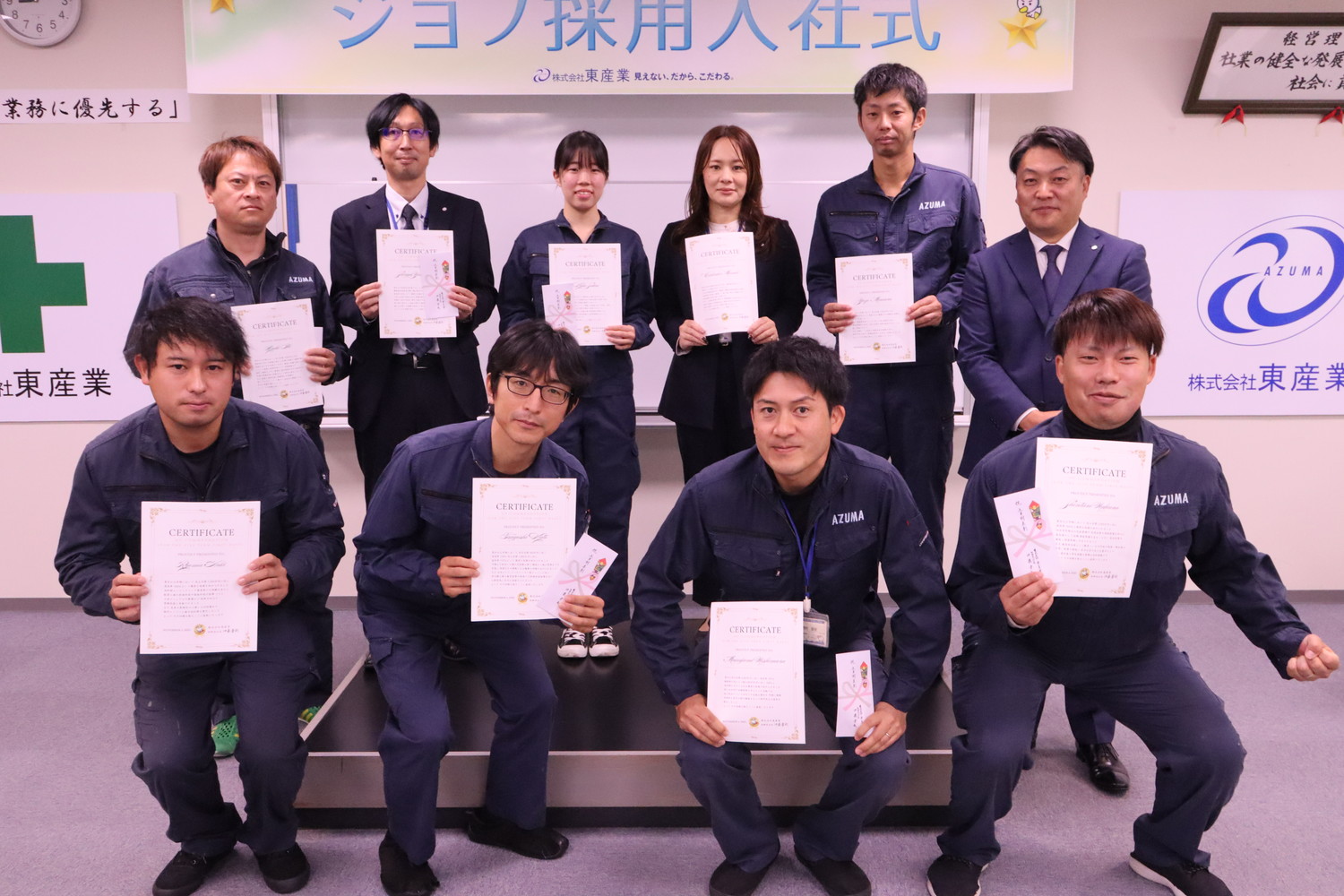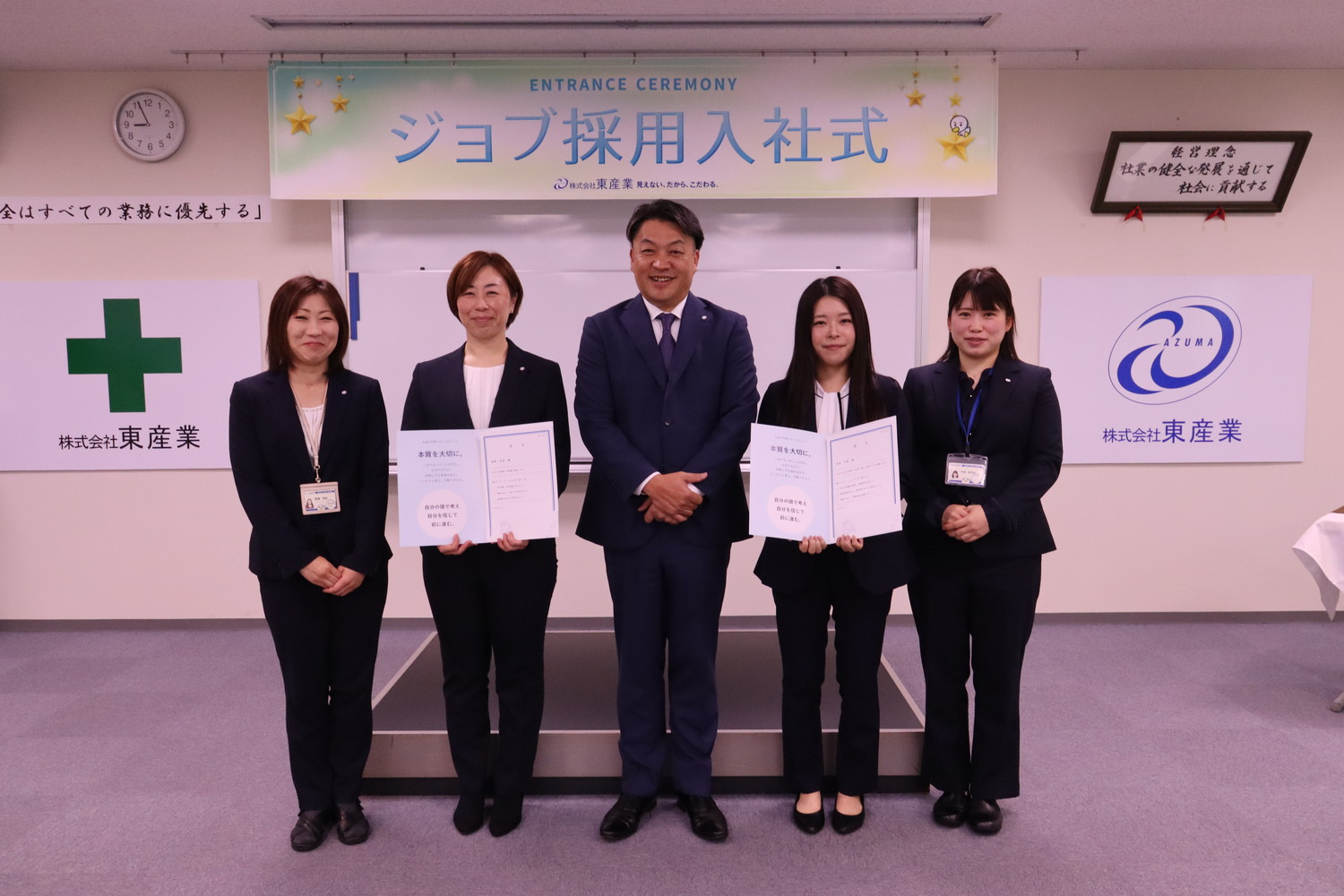 東産業では新入社員はもちろん、期中に入社いただく方の入社式も行っています。
